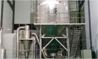 壓力噴霧干燥機干燥過程是物料由泵送至噴霧干燥機內,由霧化器將其分散為小霧滴;空氣經加熱后送入干燥室內與料霧混和、接觸;完成干燥過程后,干燥產品經分離后入庫貯藏或直接投入使用。 經壓力噴霧干燥機噴霧…